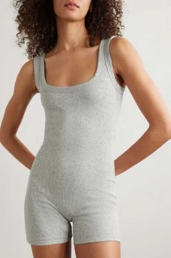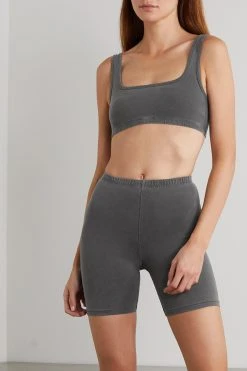 SKIMS Outdoor Basics Bike Short – Ash – Shorts Aus Jersey Aus Stretch-Baumwolle ,Schiefer
