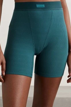 SKIMS Soft Lounge Boxer – Teal – Shorts Aus Geripptem Stretch-Modal-Jersey ,Türkis